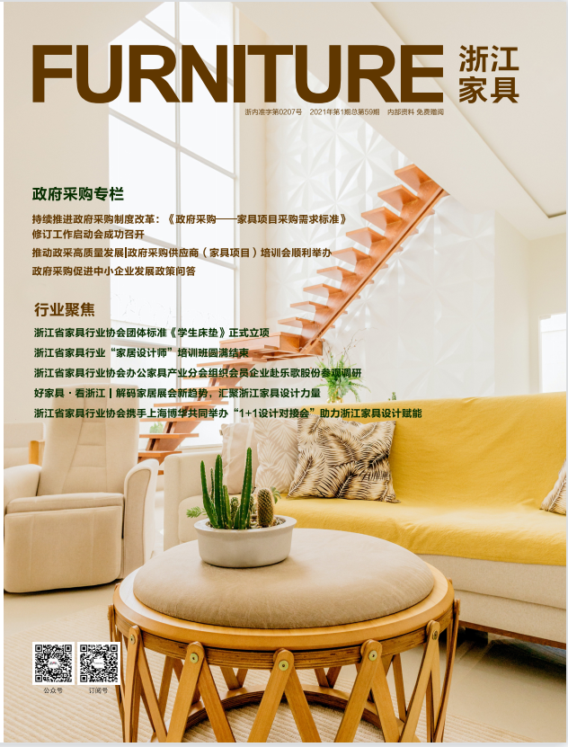 2020年,浙江省家具行業(yè)協(xié)會(huì)的信息宣傳渠道開始向數(shù)字化、互聯(lián)網(wǎng)化轉(zhuǎn)型,迄今已建立“浙江省家具行業(yè)協(xié)會(huì)”微信服務(wù)號(hào)、“浙江家具”微信訂閱號(hào)、《浙江家具》電子刊。經(jīng)過(guò)協(xié)會(huì)一年多的探索,數(shù)字化、互聯(lián)網(wǎng)化的宣傳形式以其內(nèi)容的即時(shí)性、可讀性、豐富性,受到了行業(yè)內(nèi)的廣泛好評(píng)。2021年,經(jīng)浙江省新聞出版局批準(zhǔn),《浙江家具》紙質(zhì)版從“季刊”變更為“半年刊”。