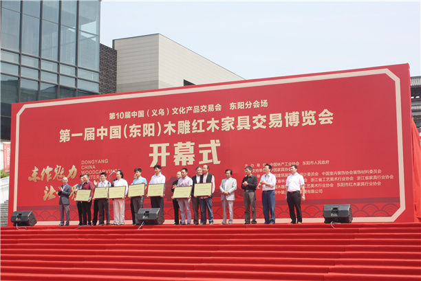 2015年4月28日,第一屆中國(東陽)木雕紅木家具交易博覽會在東陽中國木雕城國際會展中心開幕,本屆東陽紅博會由中國林產工業協會、東陽市人民政府共同主辦,中國家具協會特別支持,由中國建筑裝飾協會設計委員會、中國室內裝飾協會材料委員會、浙江省林業產業聯合會、浙江省工藝美術行業協會以及浙江省家具行業協會支持,東陽中國木雕城、東陽市工藝美術行業協會、東陽市紅木家具行業協會、杭州中裝美藝品牌管理有限公司承辦,來自東陽本地的明堂紅木、中信紅木、大清翰林、卓木王等共100多家木雕紅木家具品牌參展。