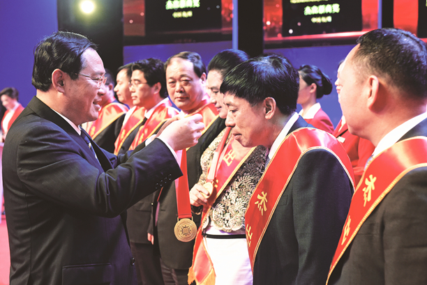 大會(huì)舉行了優(yōu)秀浙商頒獎(jiǎng)典禮,表彰獲得“杰出浙商獎(jiǎng)”“創(chuàng)業(yè)創(chuàng)新獎(jiǎng)”“浙商新星獎(jiǎng)”的浙商。集團(tuán)公司董事長(zhǎng)倪良正作為20名杰出浙商之一,榮獲“杰出浙商獎(jiǎng)”。省委書(shū)記夏寶龍?jiān)谑∪嗣翊髸?huì)堂親切接見(jiàn)了倪良正董事長(zhǎng)等獲獎(jiǎng)?wù)闵獭J¢L(zhǎng)李強(qiáng)欣然為倪良正董事長(zhǎng)等杰出浙商頒獎(jiǎng)。