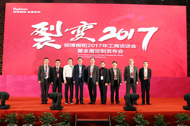 2017年2月14日,以“裂變”為主題的麗博櫥柜2017年工商洽談會暨全屋定制發布會,在景色秀麗的湖南張家界陽光酒店隆重舉行。德意控股集團董事長兼總裁高德康、麗博櫥柜總經理何國平、浙江省家具行業協會執行副理事長兼秘書長馬志翔、中國五金制品協會整體廚房分會秘書長趙汗青等領導,與200余名麗博櫥柜丨全屋定制的經銷商共同出席了盛會,總結過往,展望未來,一起見證麗博櫥柜 | 全屋定制品牌戰略的全面起航!