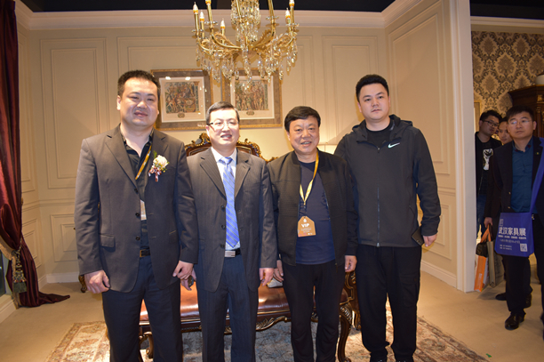 浙江家具行業(yè)協(xié)會執(zhí)行副理事長兼秘書長馬志翔(左一)、寧波富邦美品家居有限公司總經(jīng)理陳征宇(左二)、中國家具誠信聯(lián)盟俱樂部秘書長戎長生(右二)