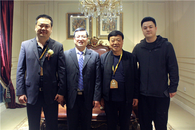 依次為:浙江家協執行副理事長兼秘書長馬志翔、諾貝董事長胡再貴、中家協理事長朱長嶺、華奇董事長李洪明