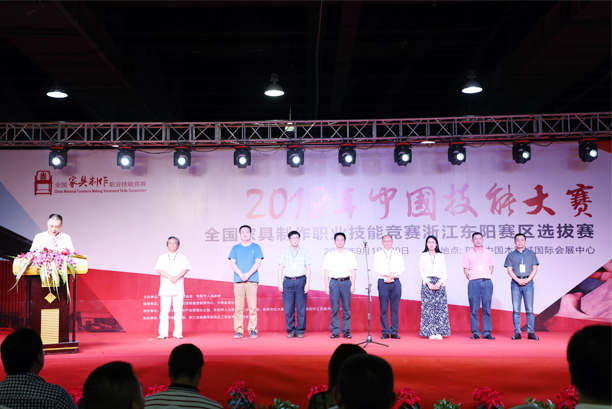 中國家具協會專家委員會副主任陳寶光、浙江省家具行業協會名譽理事長蔣鴻源、浙江省家具行業協會執行副理事長兼秘書長馬志翔、東陽市委副書記、市長姚激揚等有關領導出席了此次選拔賽的開幕式。