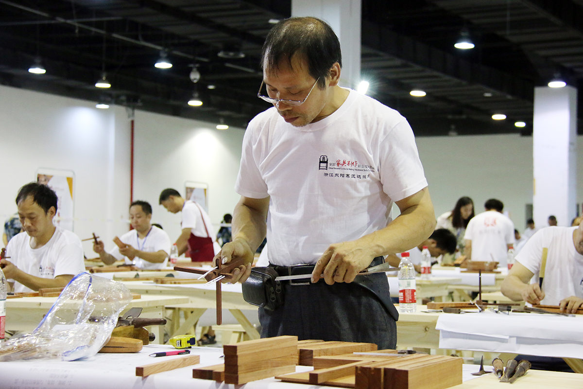 競賽內容包括理論考試和技能操作兩部分。來自全省的134名優秀木工和東陽的12家紅木家具企業分別派出團隊參加了此次競賽。本次比賽工種為手工木工,重點考察選手的榫卯家具制作能力。比賽內容以《手工木工》國家職業技能標準中的高級技能(國家職業資格三級)為基準,在8個小時之內,手工制作一條孝悌小方凳,以展現自己的榫卯家具制作能力。相關負責人告訴記者,評選結束后,比賽勝出者將獲得“全省技術能手”、“浙江省家具行業技術能手”等榮譽稱號,并代表浙江省參加全國總決賽。