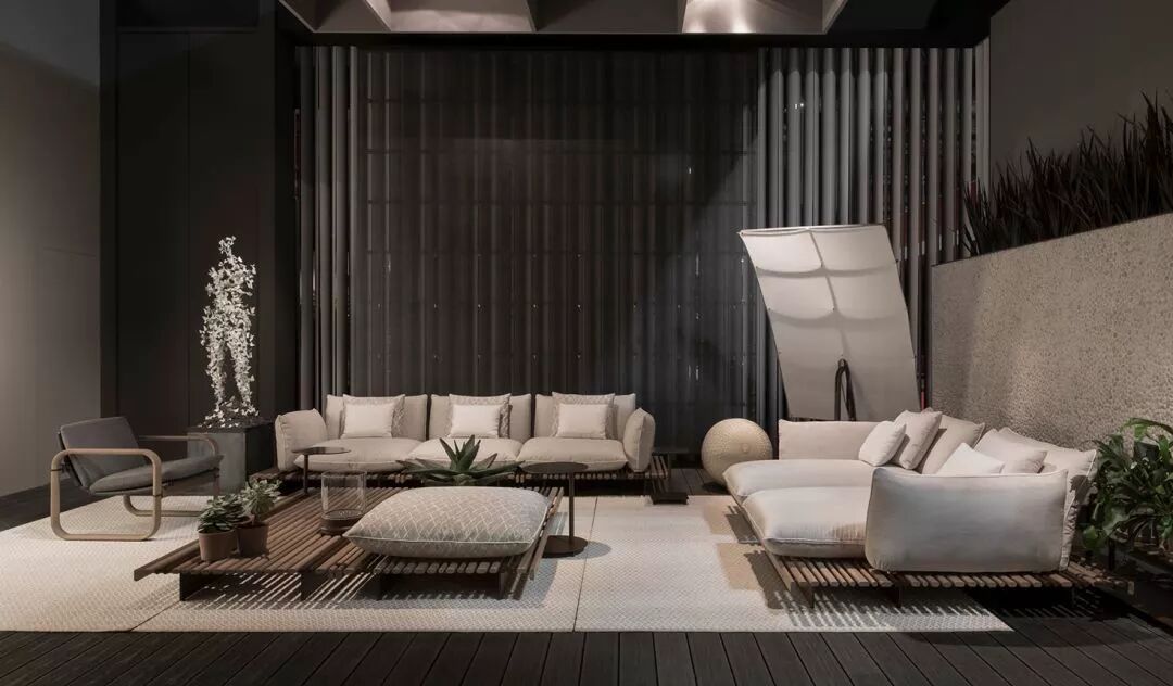 值得一提的是,雖然室內家具業的增長不夠快速,但室外家具業的發展卻頗為迅猛。主要的軟墊家具生產商帶來了完整的室外系列,比如Flexform等,尤其以Antonio Citterio的“經典”設計最引人矚目。作為另一家因飾面而聞名的公司,Giorgetti將戶外系列的設計任務交給了Palomba Serafini,最終設計出擁有絕佳Eileen Gray風格的Break系列。