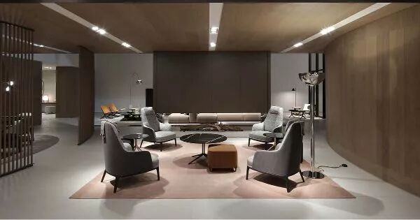 如今,幾乎沒有人(這里我們指的不僅僅是終端用戶,還包括設計師)還能在室內結構中 “會聚各種不同風格的設計”(包括布置經典作品)。裝飾方案傾向于成為風格完全統一的整體:地板材料有著墻面材料、飾面材料和涂料的影子,所有這些在復雜的氣氛照明下顯得融合無間。選擇的色調能立即與軟墊家具的材料保持一致(對織物的研究有明顯增加)。