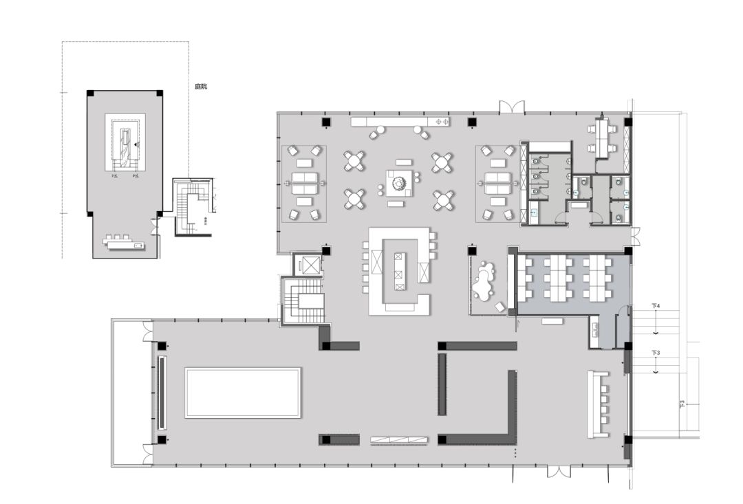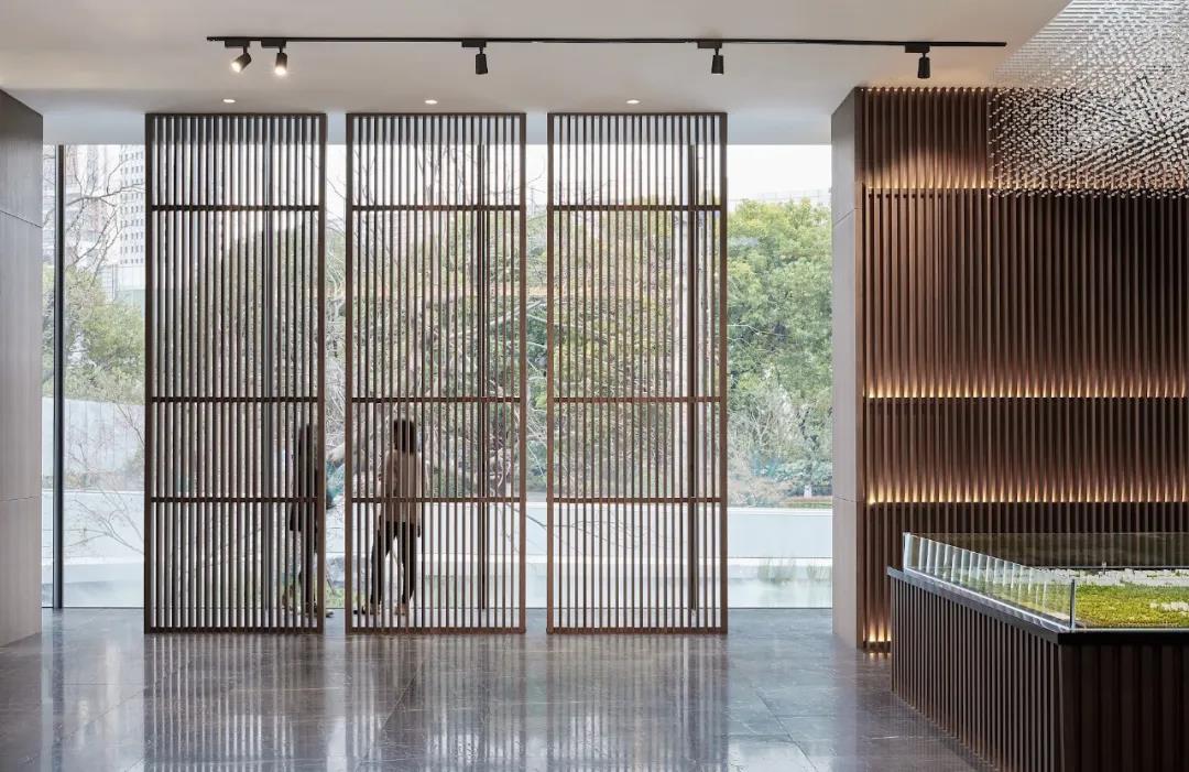 —1F景觀架空區(qū)成為一個(gè)由外部景觀世界進(jìn)入內(nèi)在的過渡區(qū)域,木式柵格門打造半開放式空間,簡(jiǎn)化了采光和人工照明整體變得安靜而質(zhì)樸,在這里最大程度的與周圍自然相互親近,于空間中追隨陽光與季節(jié)的變化,感受時(shí)間的步調(diào)。